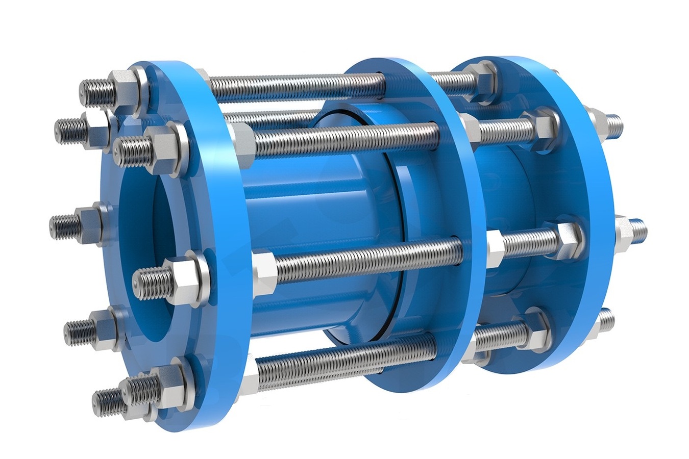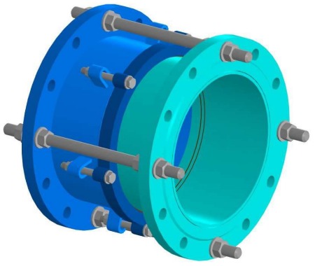 Материалы: корпус, фланец, прижимное кольцо – чугун с шаровидным графитом GGG50, эпоксидная краска. Прокладка – резина NBR 6447. Болты и гайки – оцинкованная углеродистая сталь.