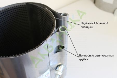 Муфта включает в себя бандаж, зажимной узел, резиновое уплотнение, вкладышю.
