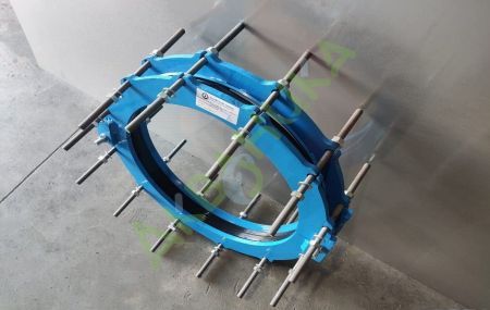 Муфта состоит из резиновой манжеты, двух разборных фланцев и метизов.Фланцы изготовлены из стали, которая покрыта защитным эпоксидным порошком с толщиной слоя 250 мкм. Цвет покрытия RAL5005.