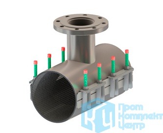 Хомут врезной двухзамковый ДУ=600 ОД=625-645 L=600 нар. резб. ДУ50 ВЗПА
