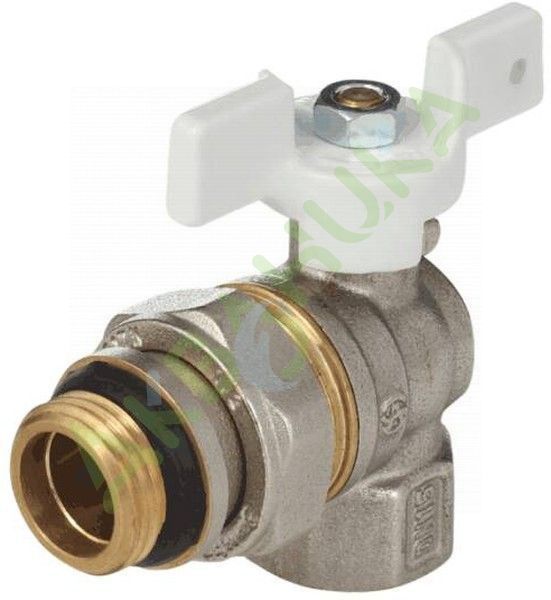 Кран шаровой латунь никель угловой 1123 Standard Ду 20 Ру40 НР/нак. гайка бабочка белая Aquasfera