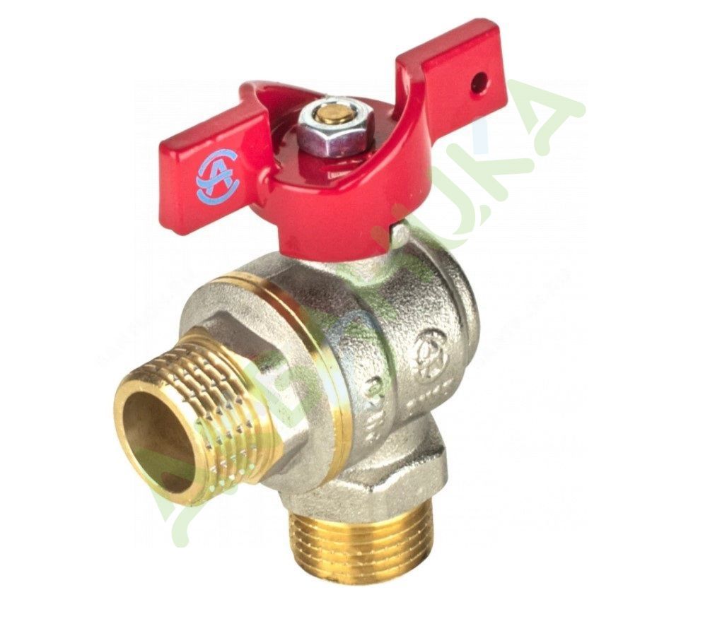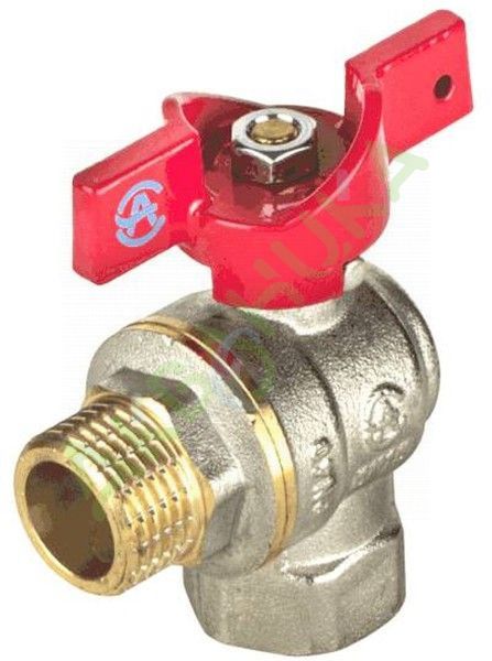 Кран шаровой латунь никель угловой 1009 Euro Ду 15 Ру40 ВР/НР полнопроходной бабочка красная