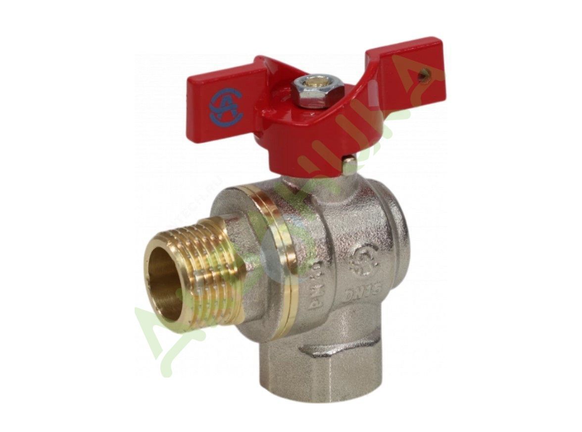 Кран шаровой латунь никель угловой 1008 Euro Ду 15 Ру40 ВР полнопроходной бабочка красная Aquasfera