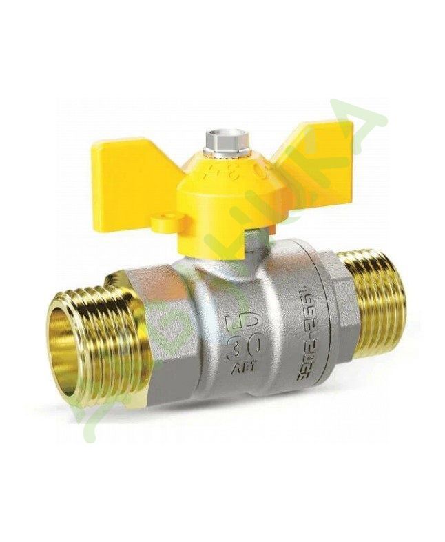 Кран шаровой латунь никель газ Pride Ду 15 Ру40 НР бабочка аналог 11б27п1 LD 47.15.Н-Н.Б