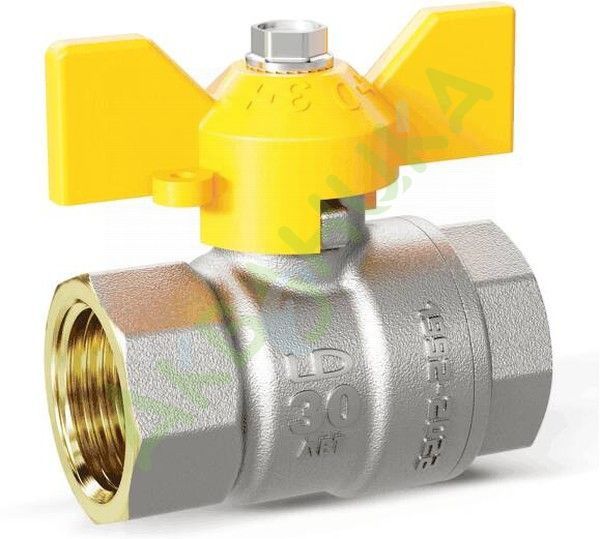 Кран шаровой латунь никель газ Pride Ду 25 Ру40 ВР бабочка аналог 11б27п1 LD 47.25.В-В.Б