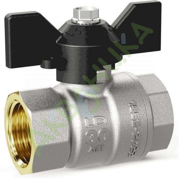 Кран шаровой латунь никель Pride Ду 32 Ру25 ВР бабочка черная аналог 11б27п1 LD 47.32.В-В.Б
