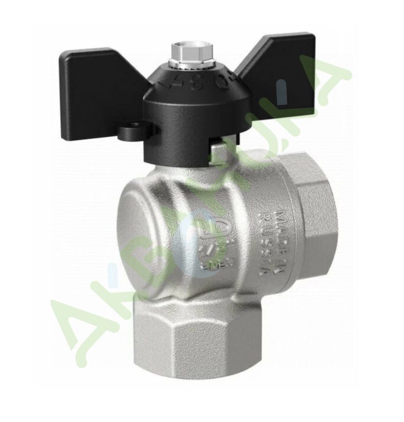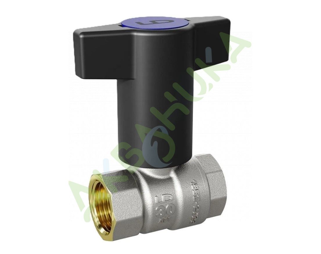 Кран шаровой латунь никель Pride Ду 25 Ру40 ВР бабочка черная аналог 11б27п1 LD 47.25.В-В.Б