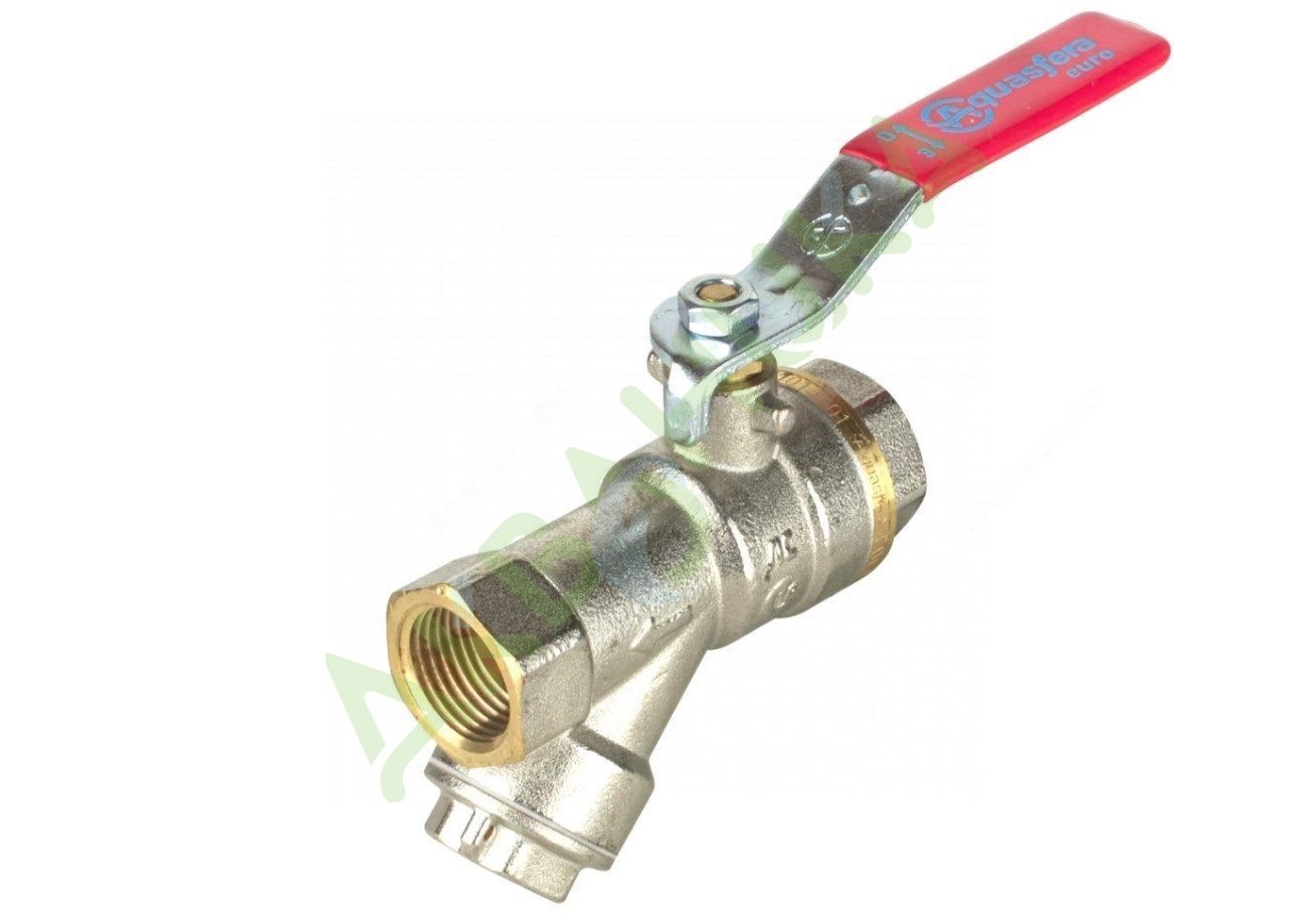 Кран-фильтр шаровой латунь никель 1014 Euro Ду 20 Ру40 ВР полнопроходной рычаг красный Aquasfera