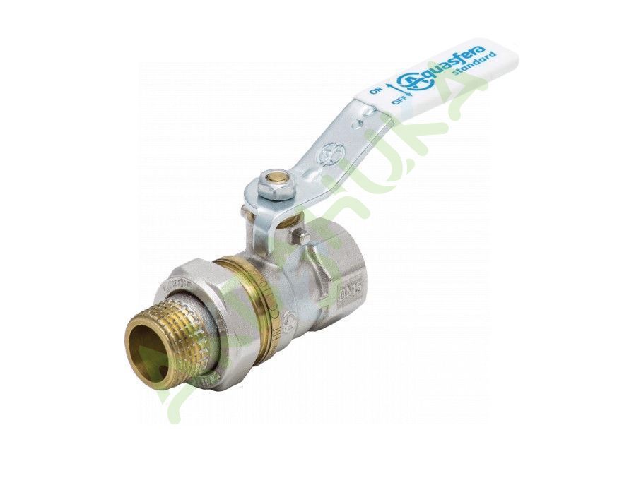 Кран шаровой латунь никель 1107 Standard Ду 15 Ру40 ВР/"американка" полнопроходной Aquasfera