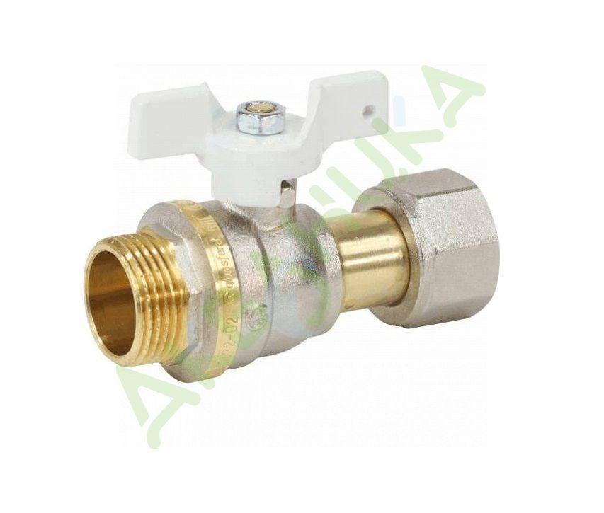 Кран шаровой латунь никель 1102 Standard Ду 25 Ру25 ВР полнопроходной бабочка белая Aquasfera