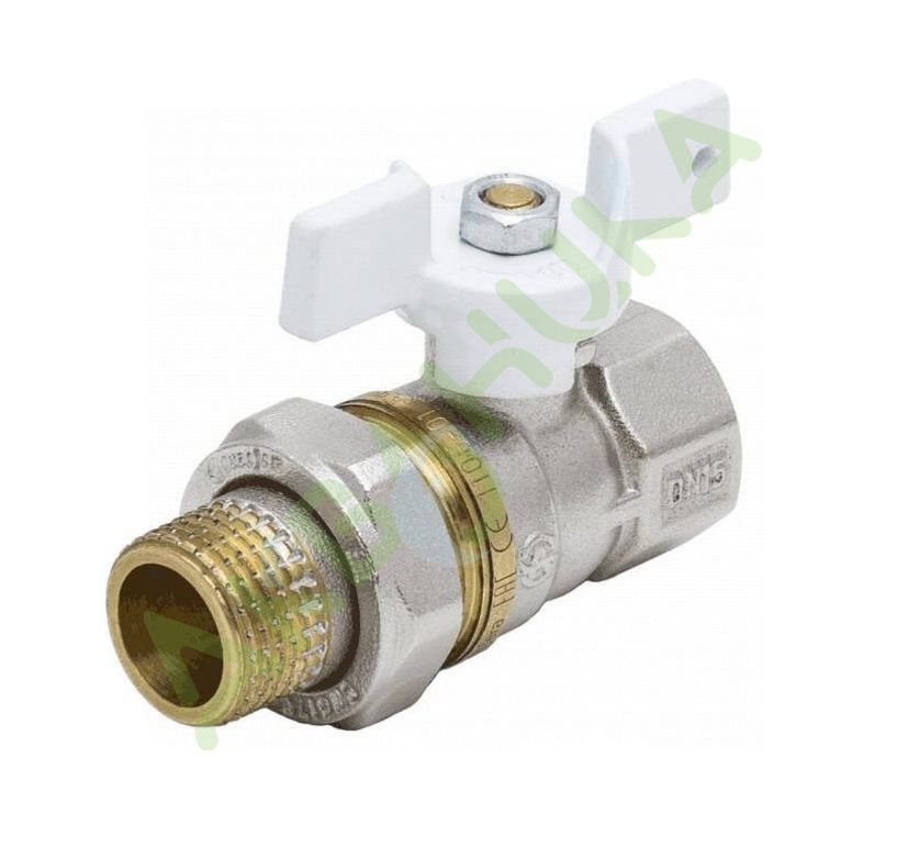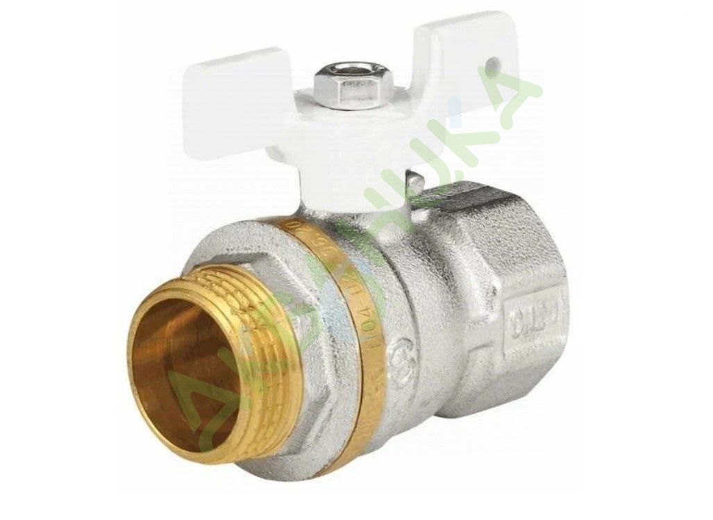 Кран шаровой латунь никель 1104 Standard Ду 20 Ру40 ВР/НР полнопроходной бабочка белая Aquasfera
