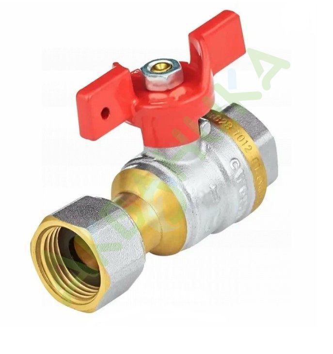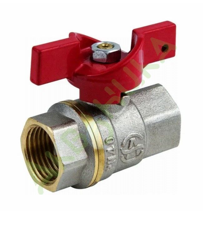 Кран шаровой латунь никель 1002 Euro Ду 25 Ру25 ВР полнопроходной бабочка красная Aquasfera 1002-03