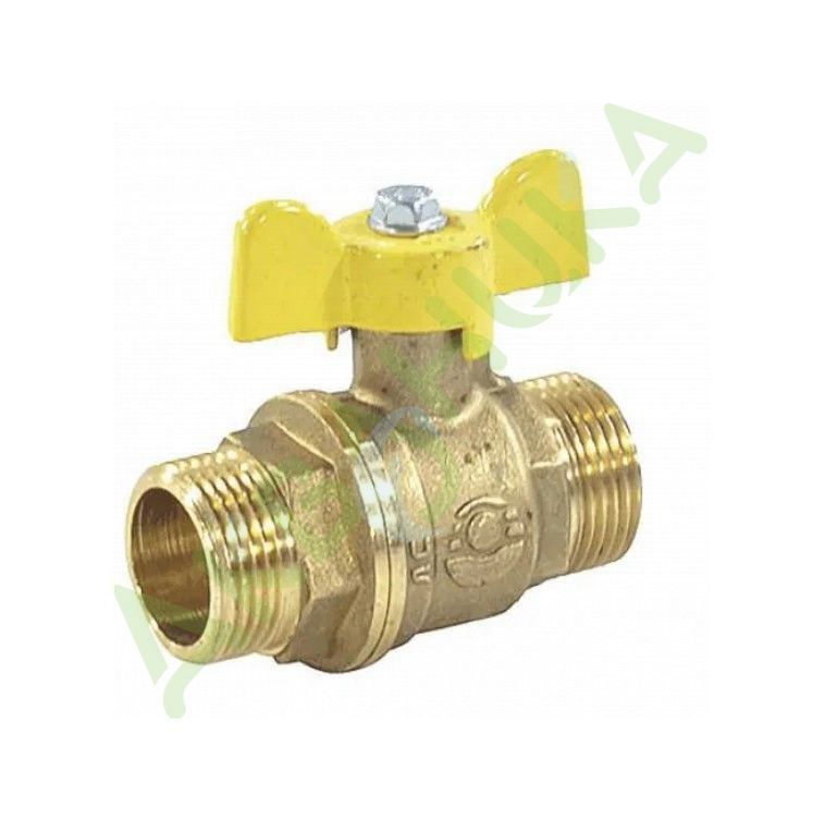 Кран шаровой латунь газ 11Б27фтМ Ду 15 Ру40 НР бабочка желтая VALFEX VF.279.LB3.012.N/P59