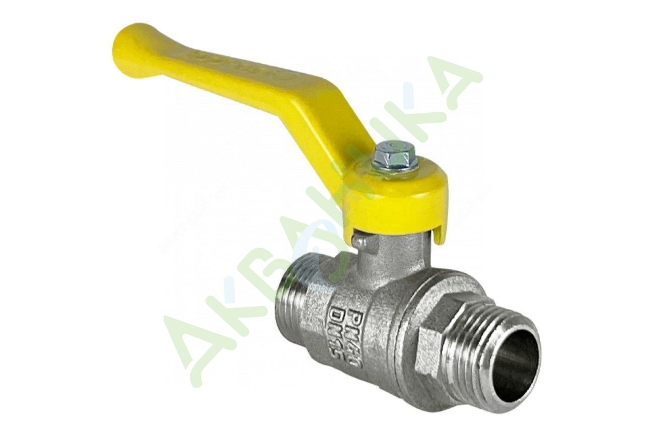 Кран шаровой латунь никель газ 11Б27фтМ Ду 15 Ру40 НР рычаг желтый VALFEX VF.270.NR3.012.N/P59