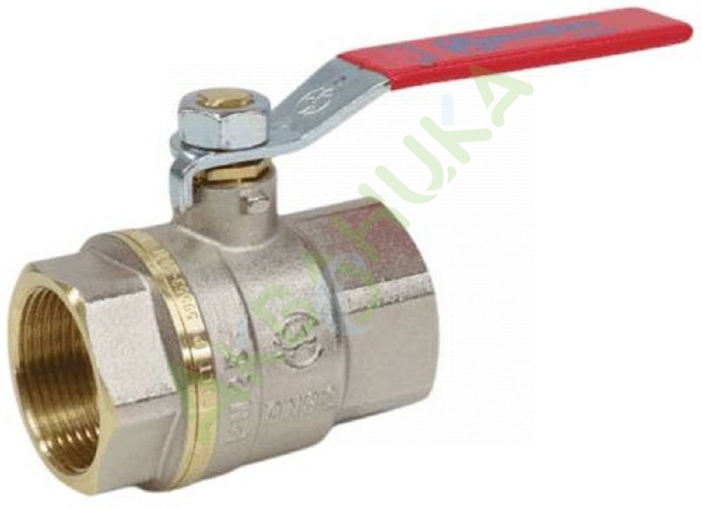 Кран шаровой латунь никель 1003 Euro Ду 40 Ру16 ВР/НР полнопроходной рычаг красный Aquasfera