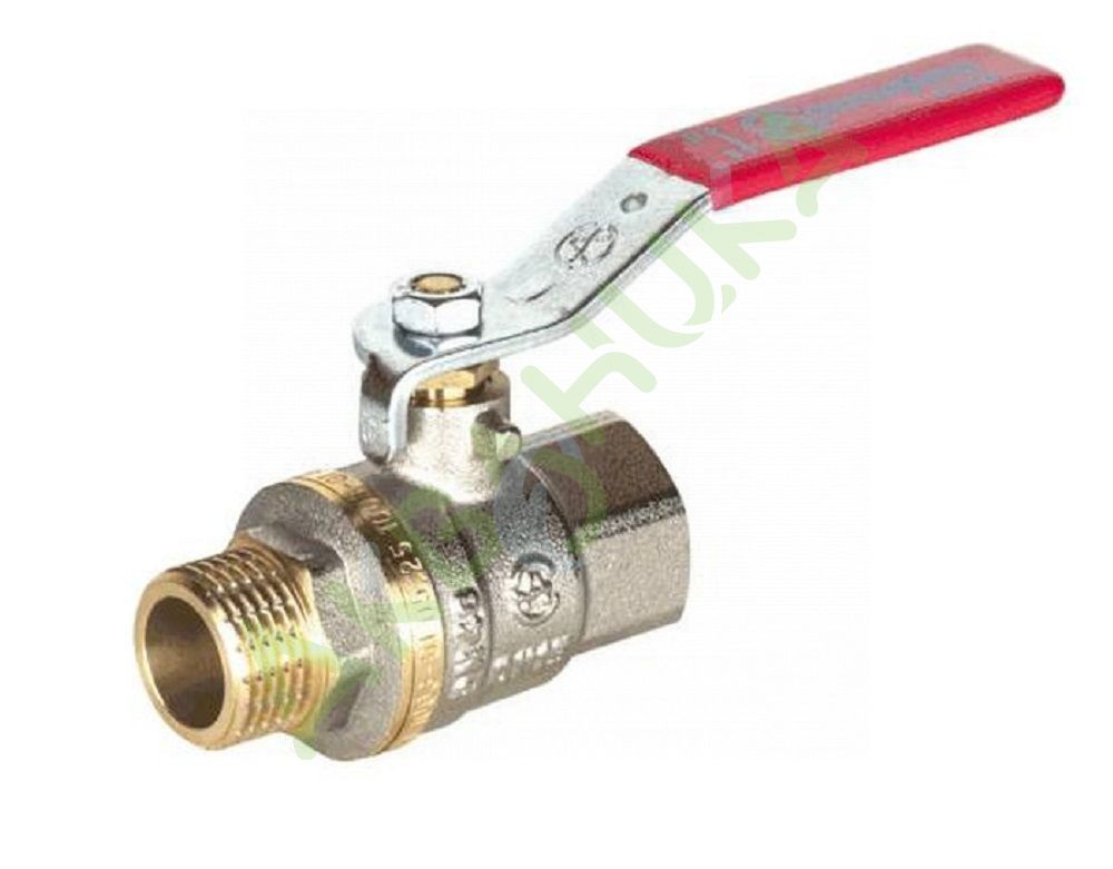 Кран шаровой латунь никель 1003 Euro Ду 25 Ру25 ВР/НР полнопроходной рычаг красный Aquasfera