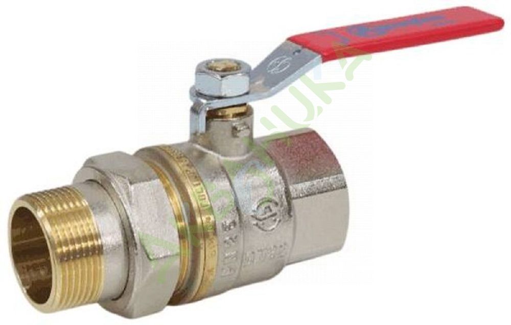 Кран шаровой латунь никель 1003 Euro Ду 32 Ру25 ВР/НР полнопроходной рычаг красный Aquasfera