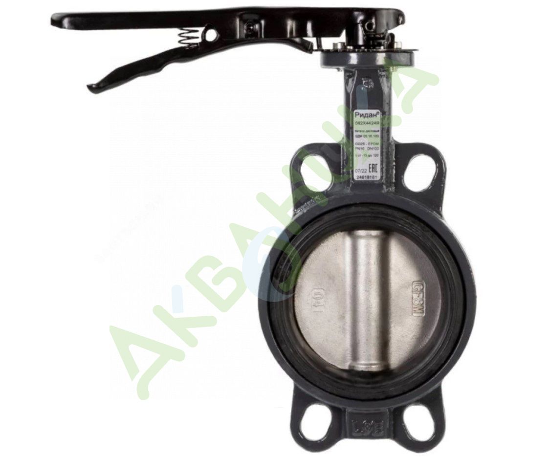 Затвор дисковый поворотный чугун ЗДМ 05 Ду 50 Ру16 межфл с рукояткой диск нерж манжета EPDM Ридан