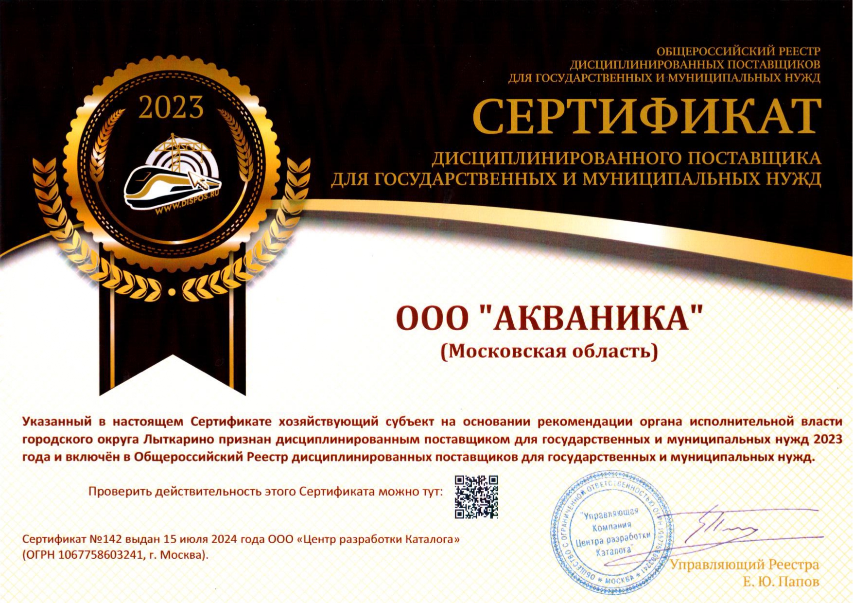 ООО "АКВАНИКА" является надёжным поставщиком для государственных и муниципальных нужд.